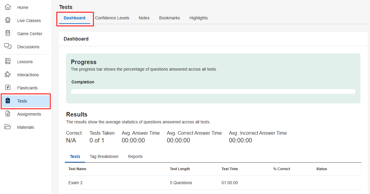 1. After you finish the exam, go to the exam Dashboard (landing page).