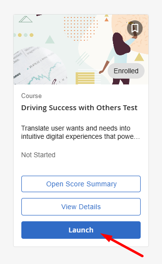 Learners can simply select the Launch button to access In Progress, Not Yet Started, Saved for Later or Completed Courses:
