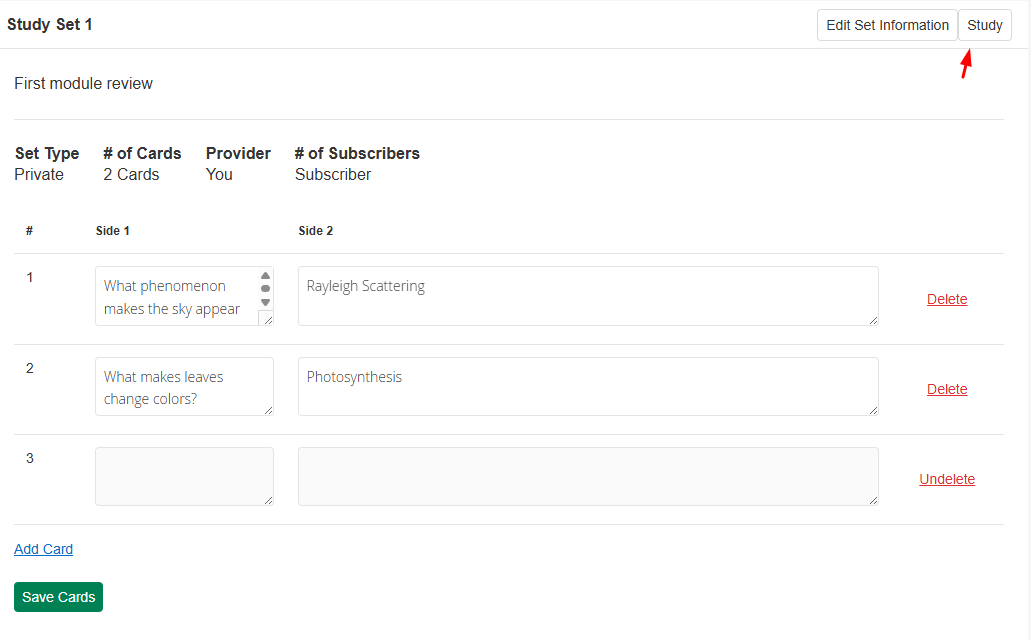 - Click on Save Cards when you're done creating your flashcards.