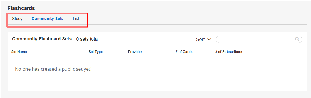 Note on Community Flashcards: If you do not see the Community Flashcards tab, this feature is not available to you.