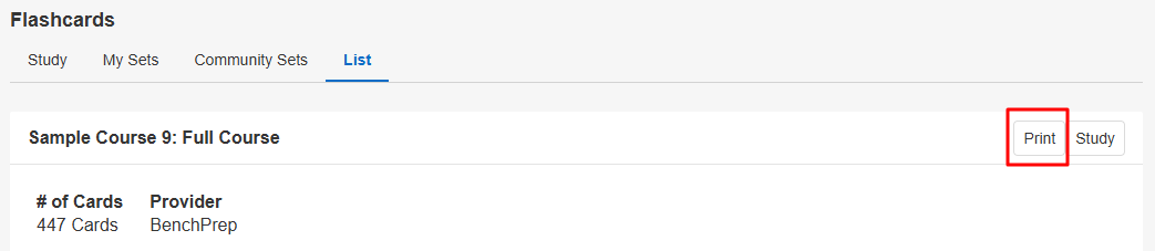 If the Download Community Flashcards feature is enabled, learners can download and print the flashcards they are subscribed to as a PDF.