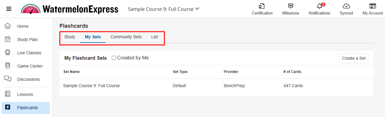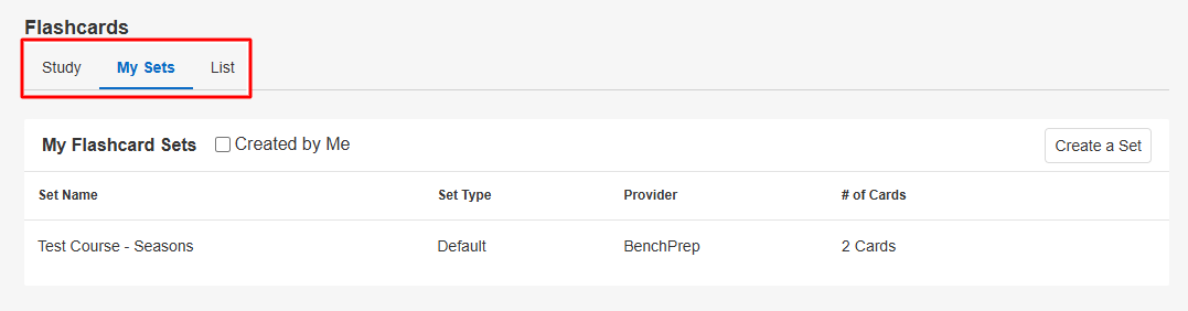 - Click on the My Sets tab and then on Create a Set.