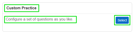 The Custom Practice feature only uses practice questions. If a question is part of a test, this question will NOT be available for Custom Practice.