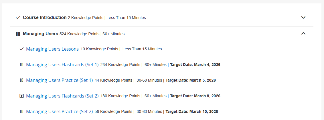 Custom Practice is also more effective the more practice questions are in a course. Having a large practice question pool ensures learners can make the most of the feature and reduces the chance they’ll encounter the same content over and over again. While there is no minimum question requirement to enable Custom Practice, courses with 100 or more practice questions will benefit the most from this feature.