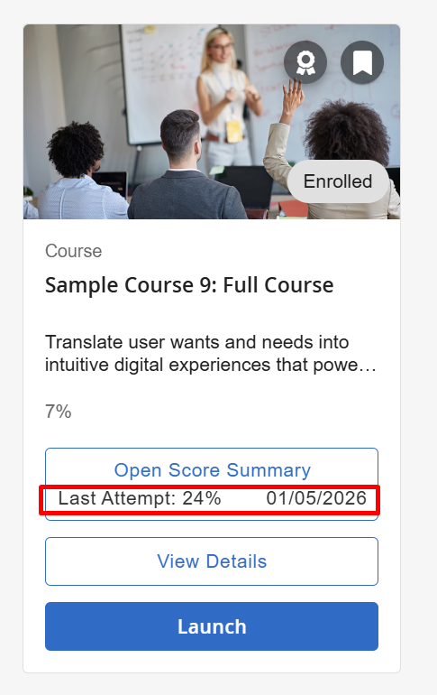 Show Last Attempt Score Data on Course Tile