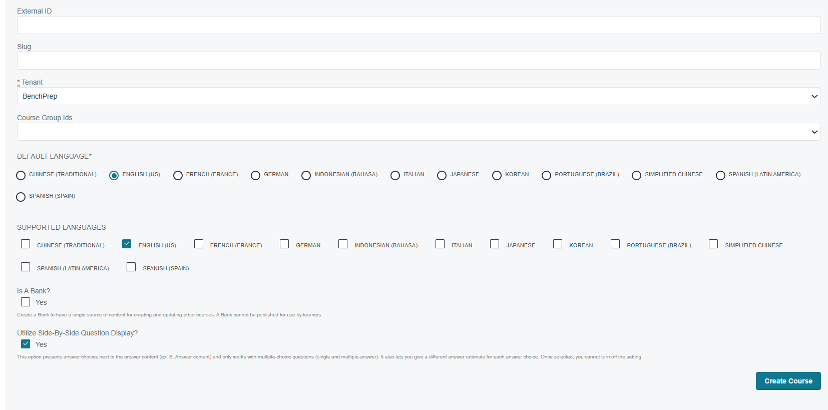 After selecting either course type, fill in the required details and click Create a Course on the lower right hand side