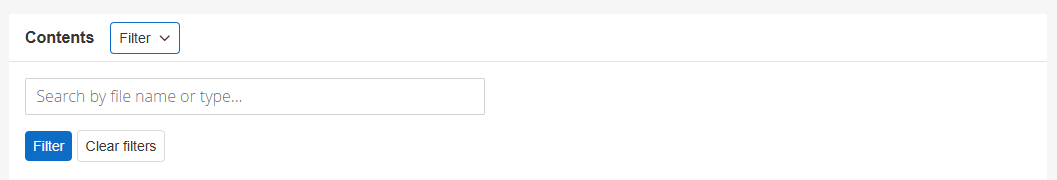 - Select the Filter button to filter materials by file name or extension.