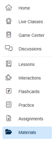 Materials added to a course can be found on the left-hand side menu options or they can be present within the toolbox button within questions and lessons for a course - depending on where they were uploaded. Visit the section below for steps on viewing course and toolbox materials.
