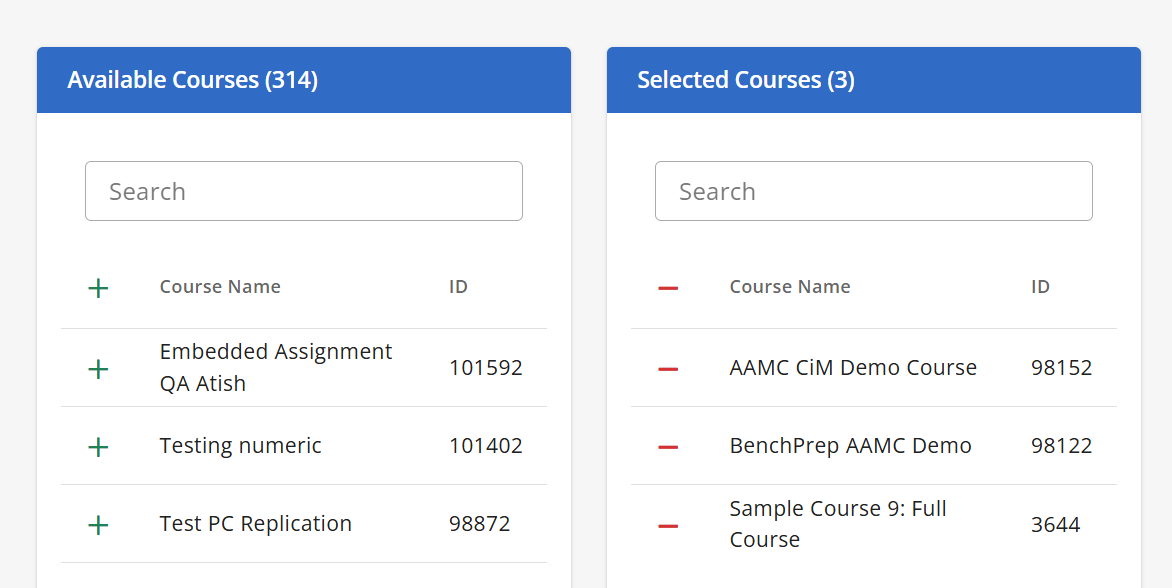 3. Move courses from the Available Courses to the Selected Courses section by clicking on the + icon next to a course.