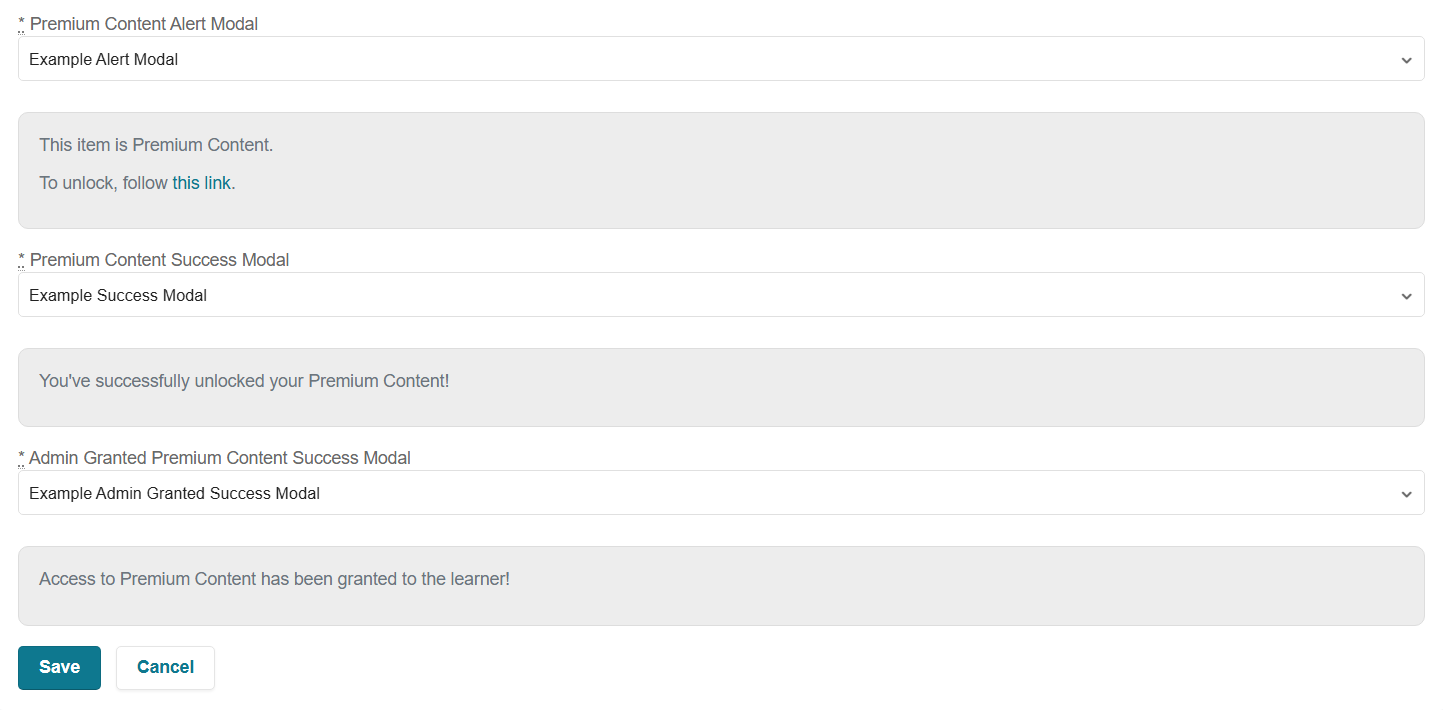 - To change a Premium Content modal, select a new modal from the dropdown.