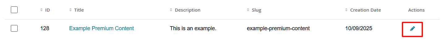 Click on the pencil icon next to the Premium Content you’d like to edit.