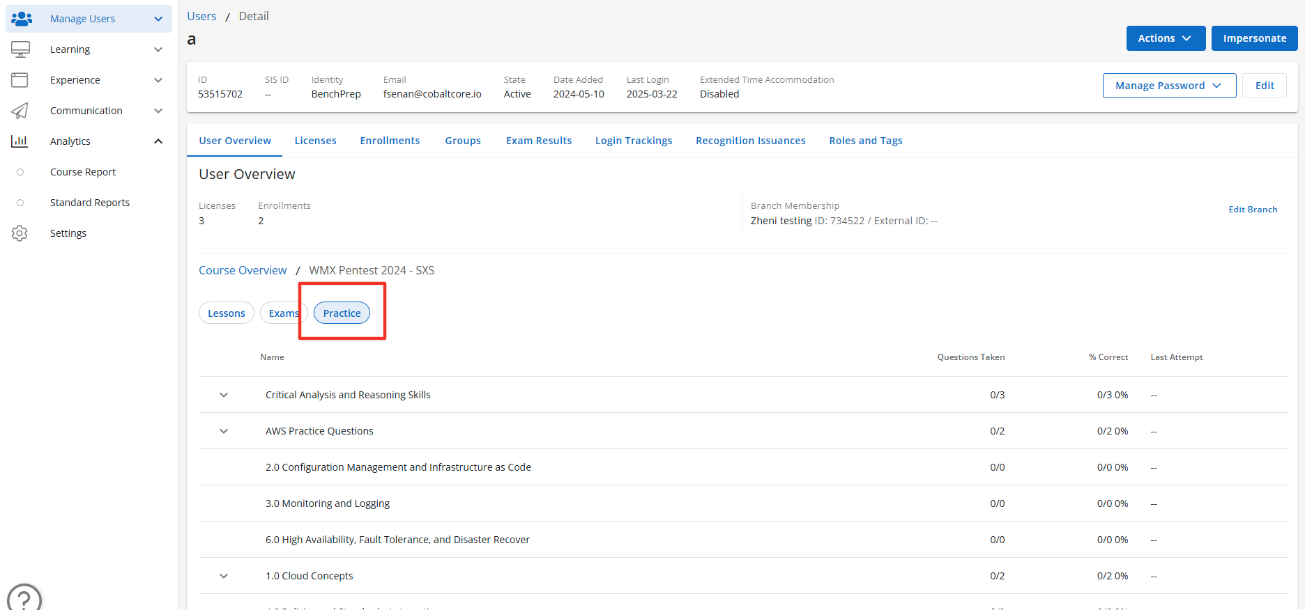 The BenchPrep Analytics functionality described in this article is currently available only in the staging environment. We are actively making updates and improvements, and functionality or data may change as we continue development.